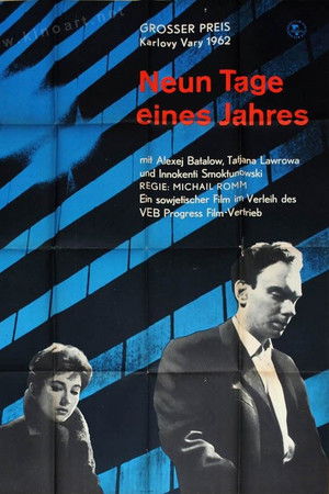Set in the Soviet scientific community, Nine Days of One Year follows two dedicated physicists whose close friendship unfolds amid dangerous nuclear research, shaped by their shared affection for a strong-willed woman. As radiation exposure, scientific ambition, and personal relationships intersect, the film offers a thoughtful, human portrait of scientists confronting the risks of progress and the choices that define their lives.
