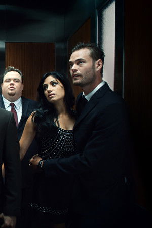 One man goes up an elevator. Then everything comes down.