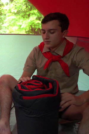 It’s the first night at Camp Bareback and best friends Dakota Lovell and Jack Andram decide to separate from the group to set up camp by themselves. Scout master Joshua Kelly goes over the uniform inspection with boy scouts Dakota Lovell and Jack Andram. Scout leader Greg McKeon welcomes new scout boy Cyrus Stark into camp, submitting him to the required orientation. Cute scout Dakota Lovell walks in on scoutmaster Aiden Asher as he’s hanging out in his tent, he asks him if he could help him do something manly so he can earn his “wood working” boadge and scoutmaster Aiden happily agrees.