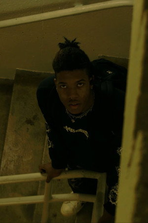 A young man is confronted by a familiar entity in a stairwell.
