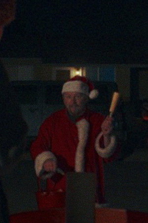 A winter bonfire discussion is curtailed by a conspiracy theorist dressed as Santa Claus